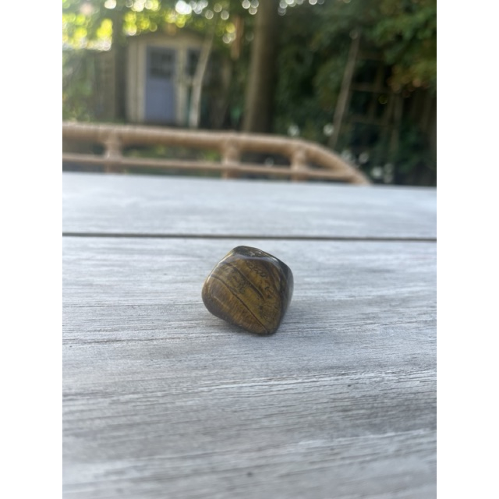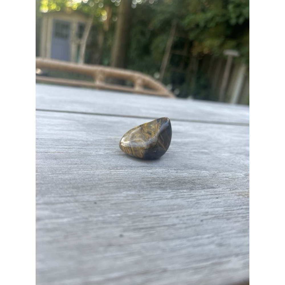 De Goudvonk is een grote trommelsteen van Tijgeroog.